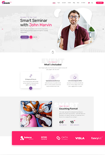 Present all the speakers and participants in GenesisExpo`s beautiful layouts. Choose your favorite variant of layout and create your own. You can create also single speaker profile with all relevant information.