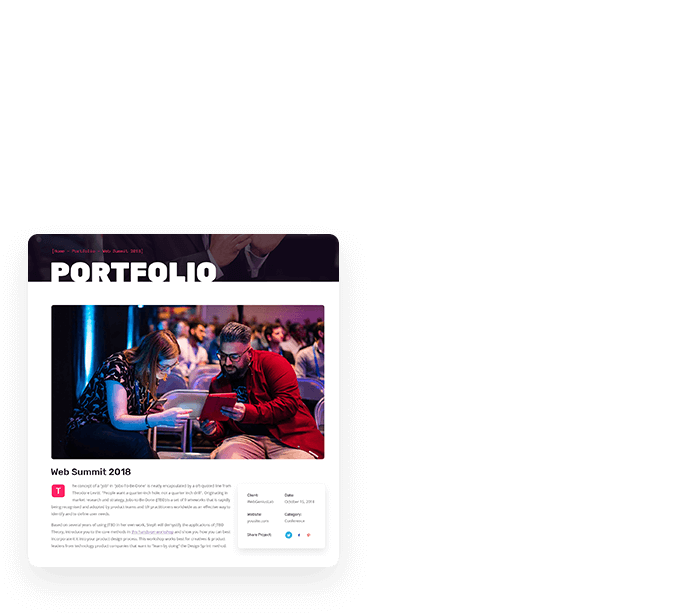 GenesisExpo included great number of beautiful inner pages. Show your projects using the ready-to-go pages. Create your incredible website right now!