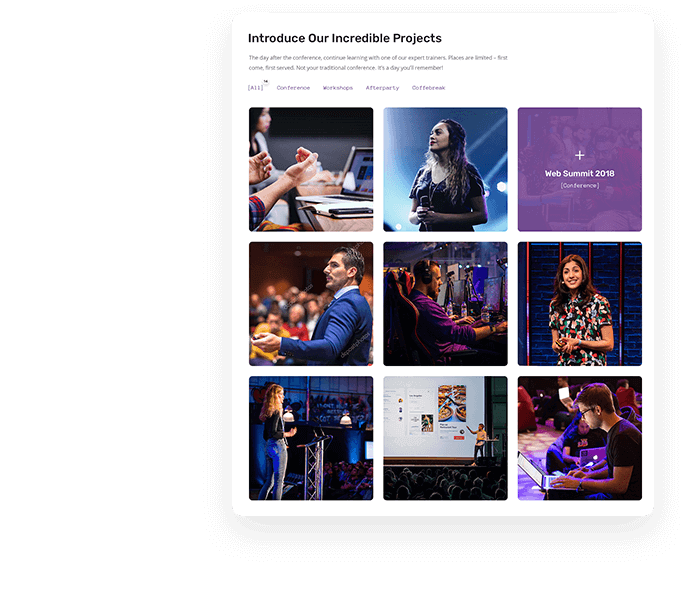 Show your gorgeous projects using our portfolio, which includes different styles like: gride, masonry. Masonry layout allows displaying projects as a fancy column-based. Grid is a perfect solution in case you need to display projects in columns.